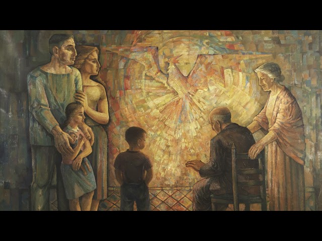 Nummer 'Out Of The Flames' met schilderij Drie generaties bij het haardvuur - Fons Gieles (collectie Markiezenhof)